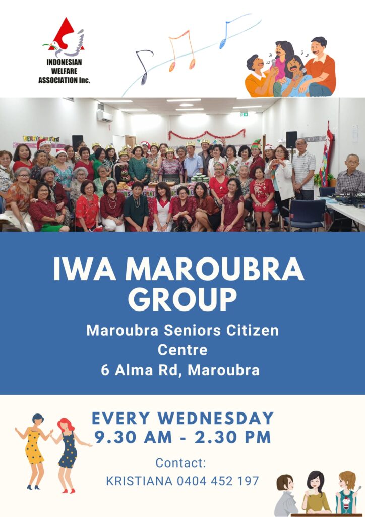 The Indonesian Welfare Association (IWA) established its first support group in 2002 in Marrickville. The aim was to provide support for the newly arrived members of the Indonesian community to come together, empower and build social network, as well as to provide information and assisting in their orientation to all aspects of life in Australia